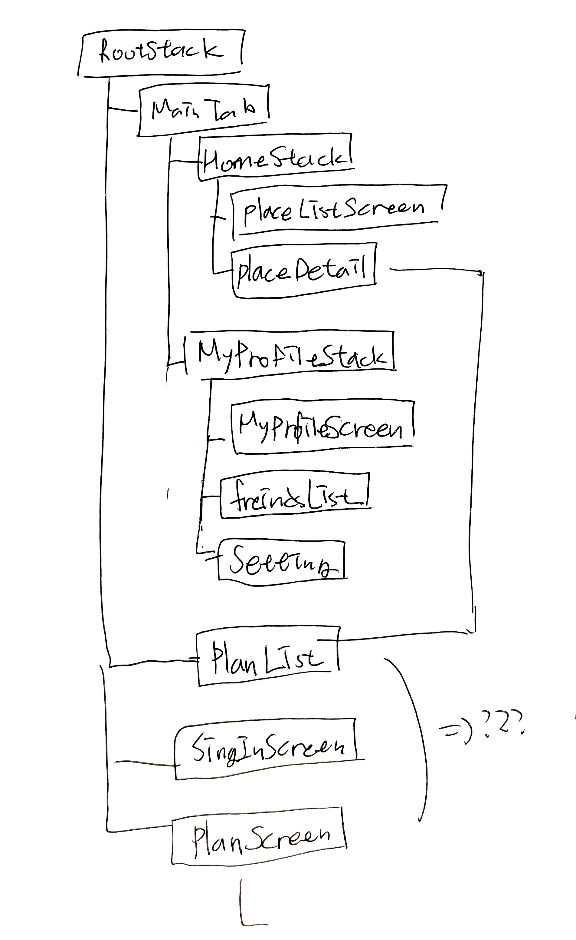 (아, 여행 계획 부분은 따로 빼는 방향으로 바뀌어서 매인 탭에 여행지 목록과 프로필 스택만 들어간다.)